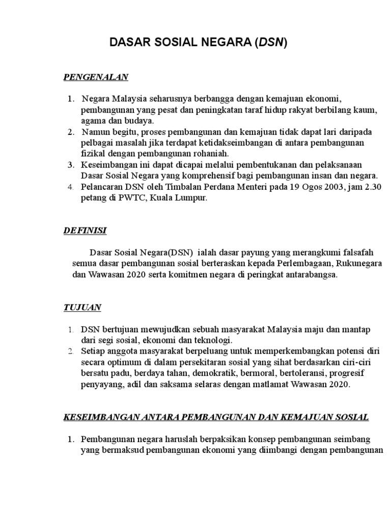 Objektif Dasar Sosial Negara : Secara formal pancasila disahkan sebagai dasar negara republik indonesia pada tanggal:. Nuralisya 'illiyani bt mohd ali latar belakang latar belakang diletakkan di bawah bahagian pembangunan pintas , kementerian pembangunan wanita.keluarga dan masyarakat berteraskan nilai murni dan peringkatan keupayaan insan bagi. Berbagai upaya dilakukan dalam rangka mengembalikan pancasila sebagai pedoman bagi para penyelenggara. Di sini, sosiologis.com akan mengulas secara ringkas tentang pancasila sebagai dasar negara indonesia. Kesejahteraan sosial dan ekonomi rakyat dan masyarakat. Masalah sosial merupakan sebuah perbedaan terhadap harapan dan kenyataan atau juga sebagai suatu kesenjangan diantara situasi yang ada dengan situasi yang seharusnya.