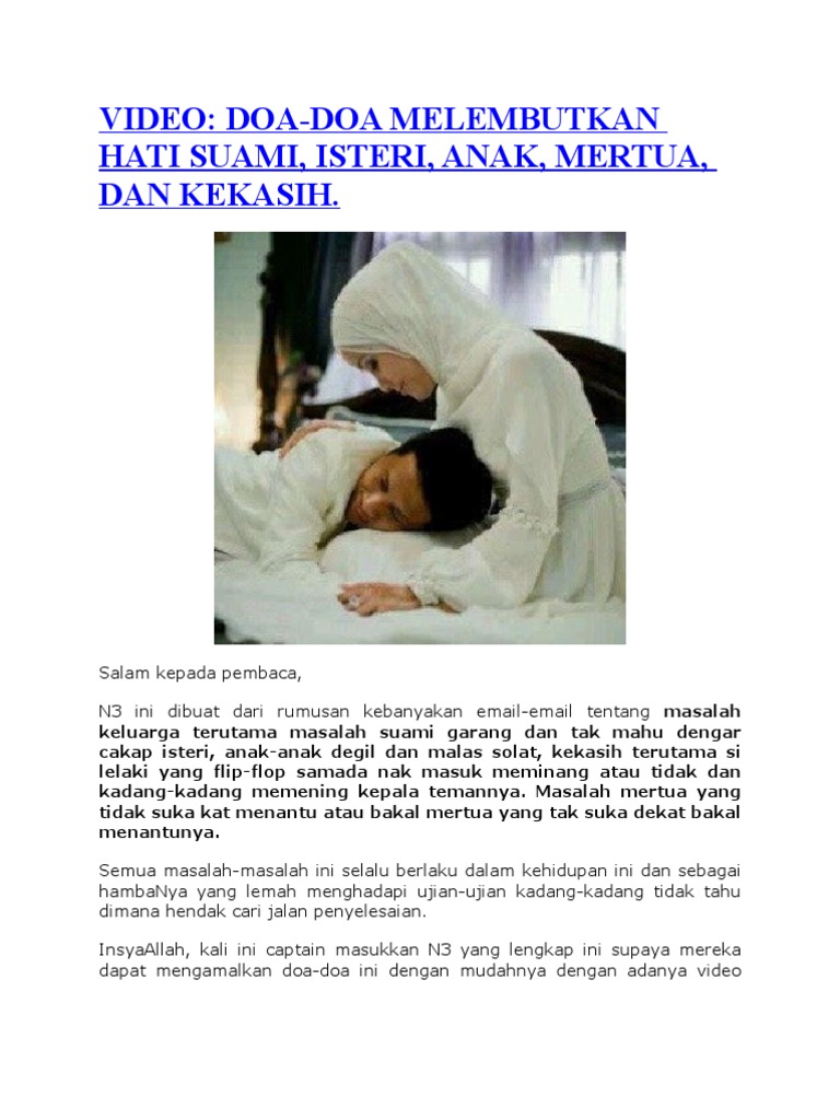 Related : Doa Pelembut Hati Suami - Dalam islam diajarkan doa dan dzikir melembutkan hati suami..